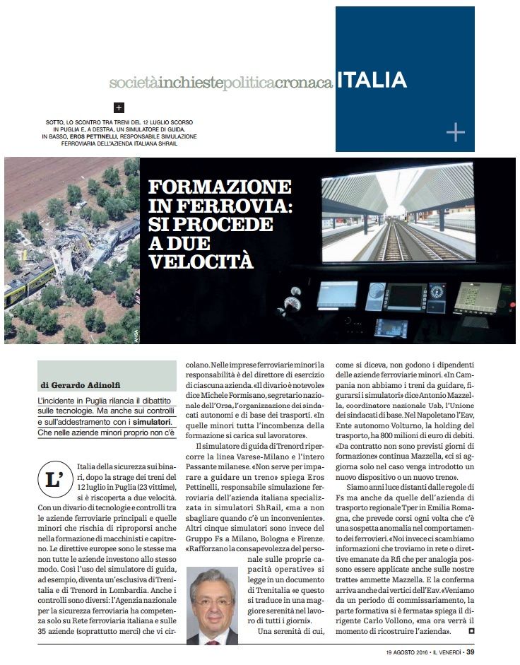 NewspapersNewspaper articles - magazines Venerdì di Repubblica – 19/08/2016Railway training: progress at two speedsLa Tecnica Professionale – October 2008The ACEI simulator at the RFI professional school in Milan